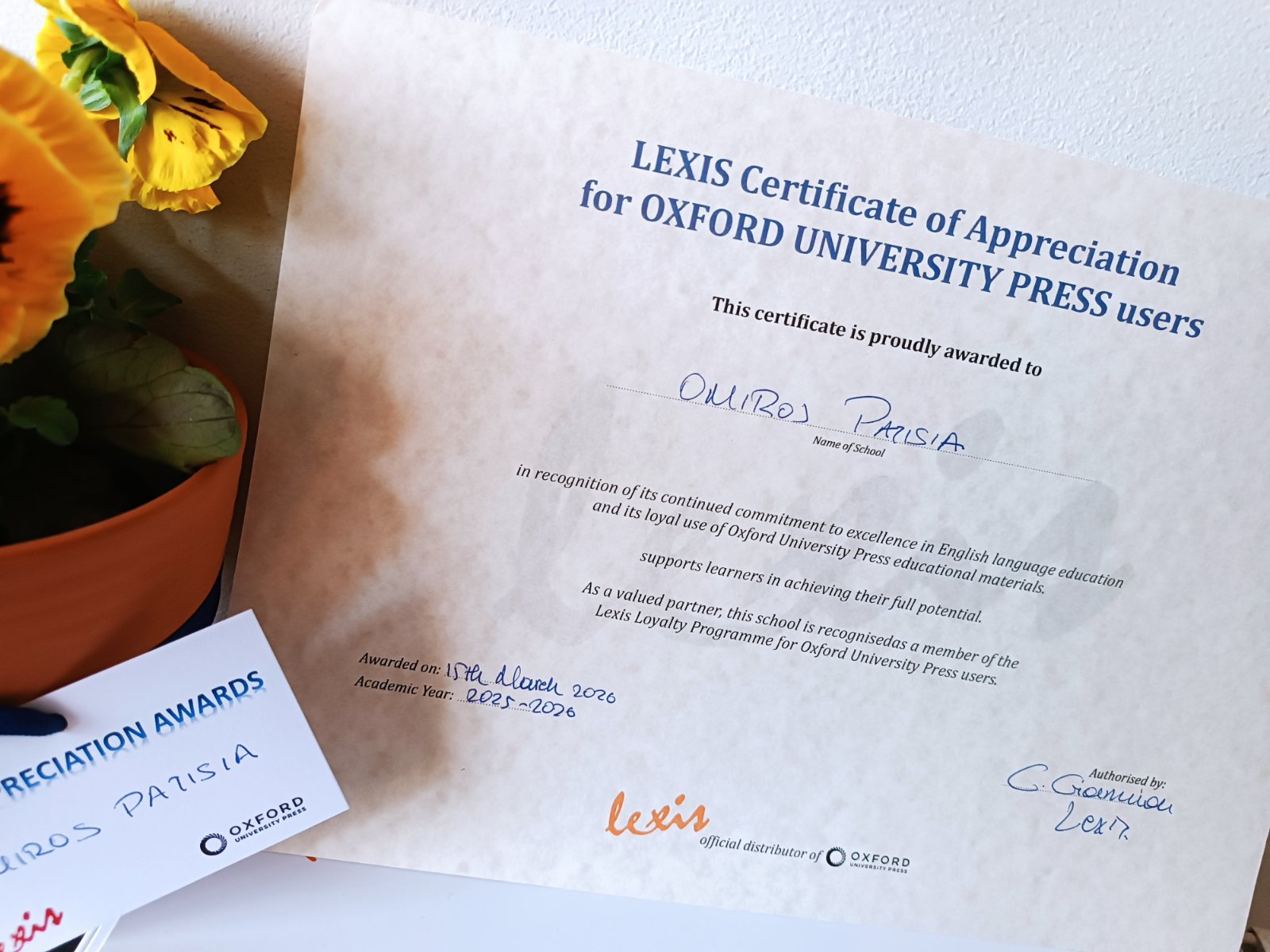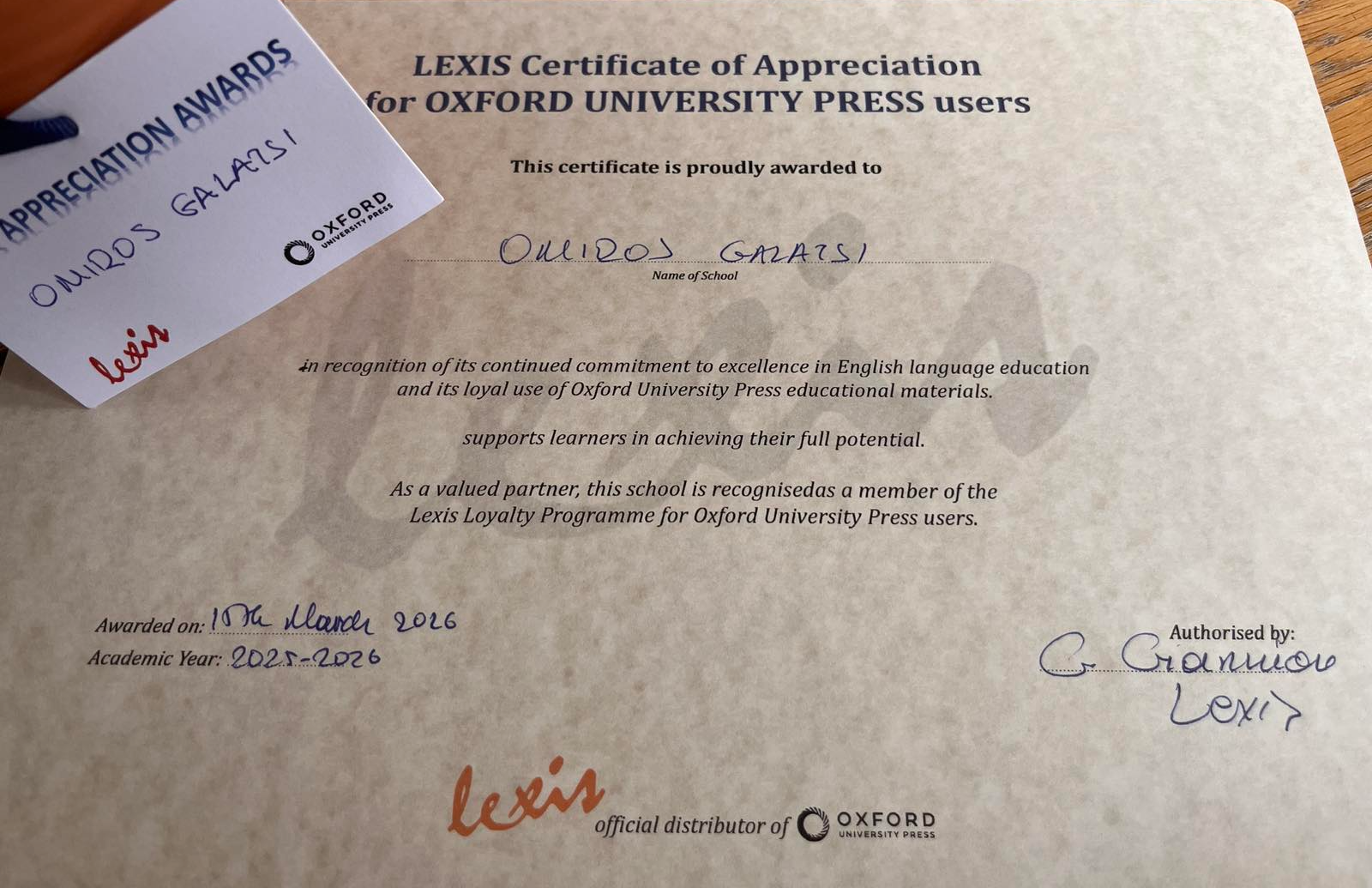 Ιδιαίτερη τιμή για τα σχολεία μας Omiros Galatsi – A.Patissia – Lambrini η διάκριση στο Lexis Appreciation Awards for Oxford Books Users Ceremony στην Αθήνα για την ποιότητα της δουλειάς μας και την εκπαιδευτική μας προσέγγιση.